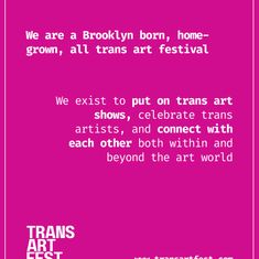 From April - May 2026, Trans Art Fest will present two months of community powered art programming: 11 all-trans art exhibitions and over 20 events and counting across NYC. It is the first year of the festival, a grassroots initiative entirely volunteer run by trans artists, organizers, and allies. At this critical moment of dual visibility and attack, Trans Art Fest works to celebrate trans art and to support, connect, and empower trans artists, strengthening community both within and beyond the art world.