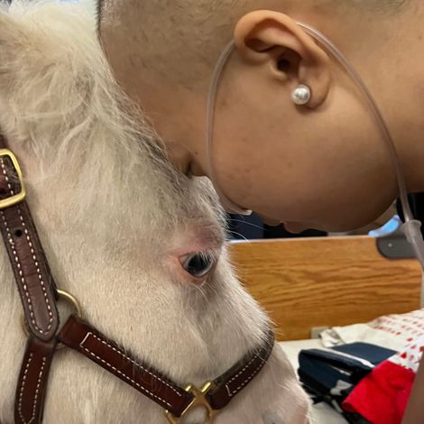 Stash is a certified miniature therapy horse and has a permit with Animal Services, Toronto to visit hospitals, healthcare facilities, libraries and schools. Some visits are with younger children, other visits are with seniors. Many visits focus on patients who are palliative or complex care who cannot exit their care home easily. Stash goes on visits approximately 1-2x monthly.
