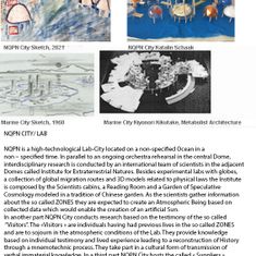 NQPN is a high-technological Lab-City located on a non-specified Ocean in a non – specified time. In parallel to an ongoing orchestra rehearsal in the central Dome, interdisciplinary research is conducted by an international team of scientists in the adjacent Domes called Institute for Extraterrestrial Natures. Besides experimental labs with globes, a collection of global migration routes and 3D models related to physical laws the Institute is composed by the Scientists cabins, a Reading Room and a Garden of Speculative Cosmology modeled in a tradition of Chinese garden. As the scientists gather information about the so called ZONES they are expected to create an Atmospheric Being based on collected data which would enable the creation of an artificial Sun. In another part NQPN City conducts research based on the testimony of the so called “Visitors”. The «Visitors » are individuals having had previous lives in the so called ZONES and are to sojourn in the atmospheric conditions of the Lab. They provide knowledge based on individual testimony and lived experience leading to a reconstruction of History through a mnemotechnic process. They take part in a cultural form of transmission of verbal immaterial knowledge. In a third part NQPN City hosts the called « Suppliers », Individuals ready to engage in a high-end technologically designed death experience through cryogenic preservation. As Individuals they have decided to take part in a form of Post-Humanity expecting their preserved brain data to become part of a Future society. Hazardous encounters between Suppliers, Visitors and Researchers soon create a dysfunctionality in the perceived space/time reality of the LAB with consequences to the LAB´s general mission. NQPN city/lab can be seen as a metaphor for liberté de conscience.