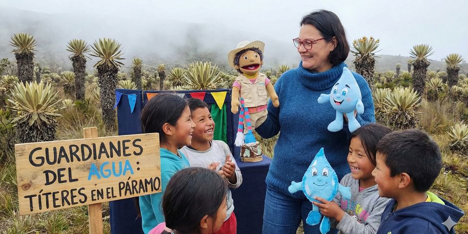 Imagine a traveling puppet theater climbing a 4x4 trail to the high Andes of Colombia, right where water is born. We bring educational magic to rural children living in the Páramo ecosystem—the misty moorlands that act as natural sponges providing water to millions in the cities below.