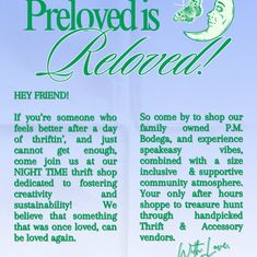 We’re a mom and pop thrift collective, that operates in the evening hours. We host 15 different vendors ranging from poetry, to vintage, to artisans, to mocktail makers- to help keep money local and in community, keeping our money away from online. We take in donations to keep things local, and anything we don’t use we upcycle with in house crafters (who also do repairs for low fees!). We are a community hub that hosts (sober) events, our monthly calendar is usually filled with community craft nights, tiny thrift store concerts, curated poetry nights. We hope to use this bodega’s success in the future as a medium to elevate, local artisans and Thrifters, to create a more sustainable locally funded shopping experience.