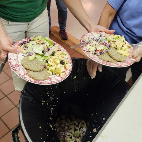 From preparation to dining room set up, through meal service and clean up, Dinner Bell runs as a well-oiled, efficient machine. At the end of meal service, remaining meals are packaged and offered to guests to supplement at-home nutrition. Unfortunately, not every morsel of food gets consumed or brought home by guests, so with every community meal comes an unavoidable amount of food waste. Currently, all food scraps and paper goods (e.g., napkins) go into the trash. Depending on the number of guests, the food waste can be significant and is by far the greatest contributor to solid waste generated. Composting has been suggested for years; however, funding has never been available. Meals cost $400-500/week to prepare, and only a portion (approximately 1/3) of meal “sponsors” pay those costs. Food for the majority of meals is purchased using donations. As Dorothy Calandra, Dinner Bell organizer, expressed frankly, “I can either spend the limited money we have on composting, or spend it on food. I need to spend it on food."